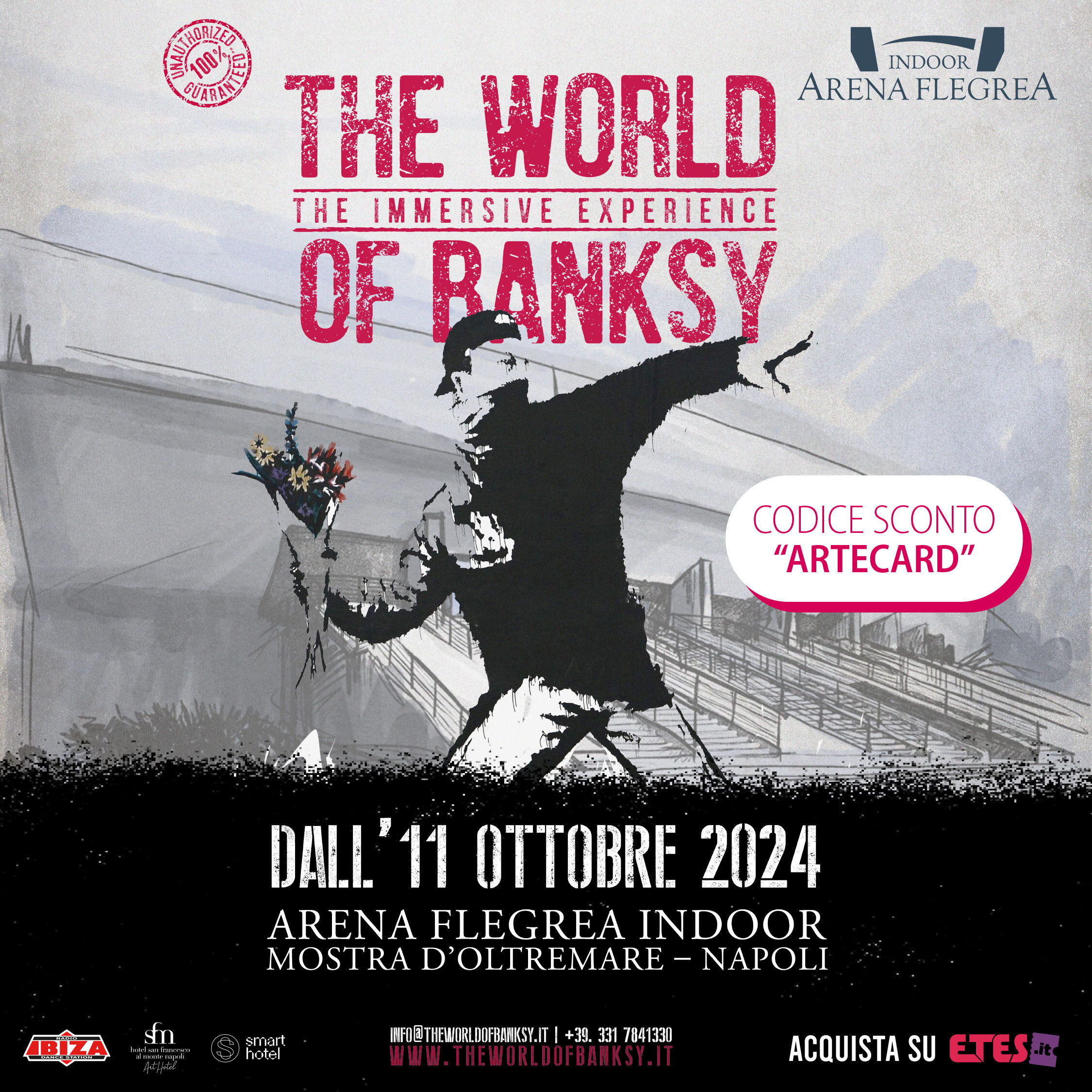 Un’esposizione dedicata all’enigmatico street artist Banksy, conosciuto in tutto il mondo per il suo stile inconfondibile e i messaggi sociali incisivi. La mostra raccoglie oltre 120 riproduzioni delle sue opere più famose, ricreate in scala reale per immergere il visitatore nell’atmosfera urbana che caratterizza il lavoro dell’artista. Tra gli elementi principali: